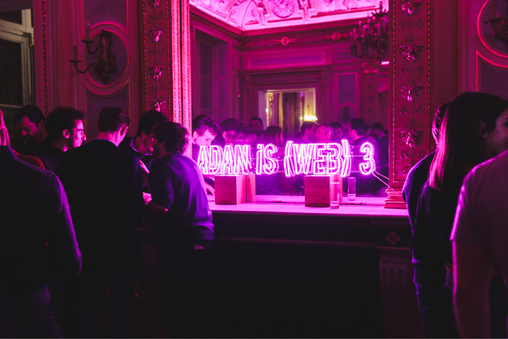En savoir plus - Wagmi Studio : Pour fêter les 3 ans de l’Adan, Wagmi Studio est hyper heureux d’apporter le premier gâteau NFT : chaque invité a été convié à minter une bougie NFT puis de le positionner sur le gateau virtuel. Lors de l’événement, une simple signature sur la blockchain nous a permis de « souer » digitalement sa bougie NFT !